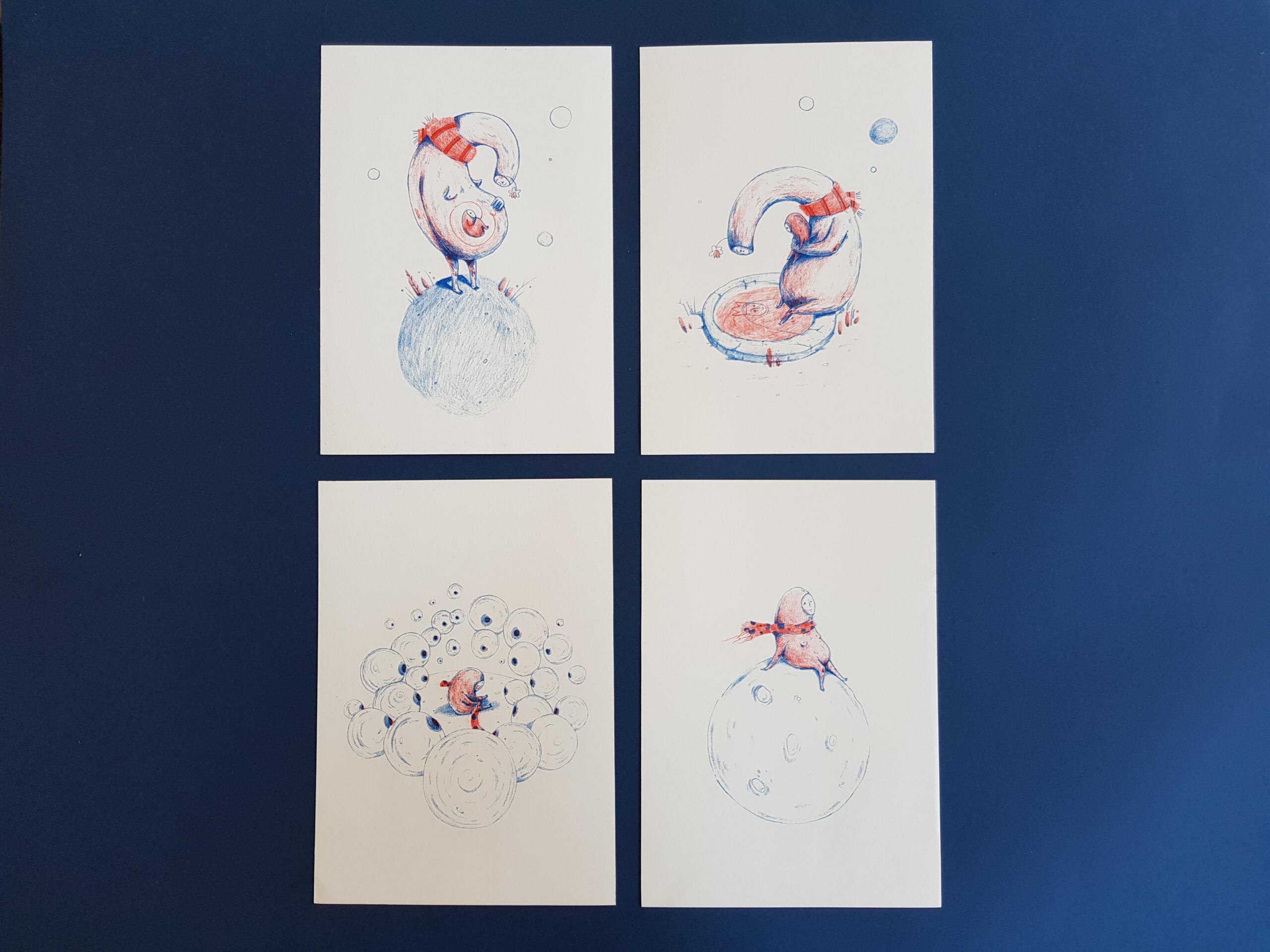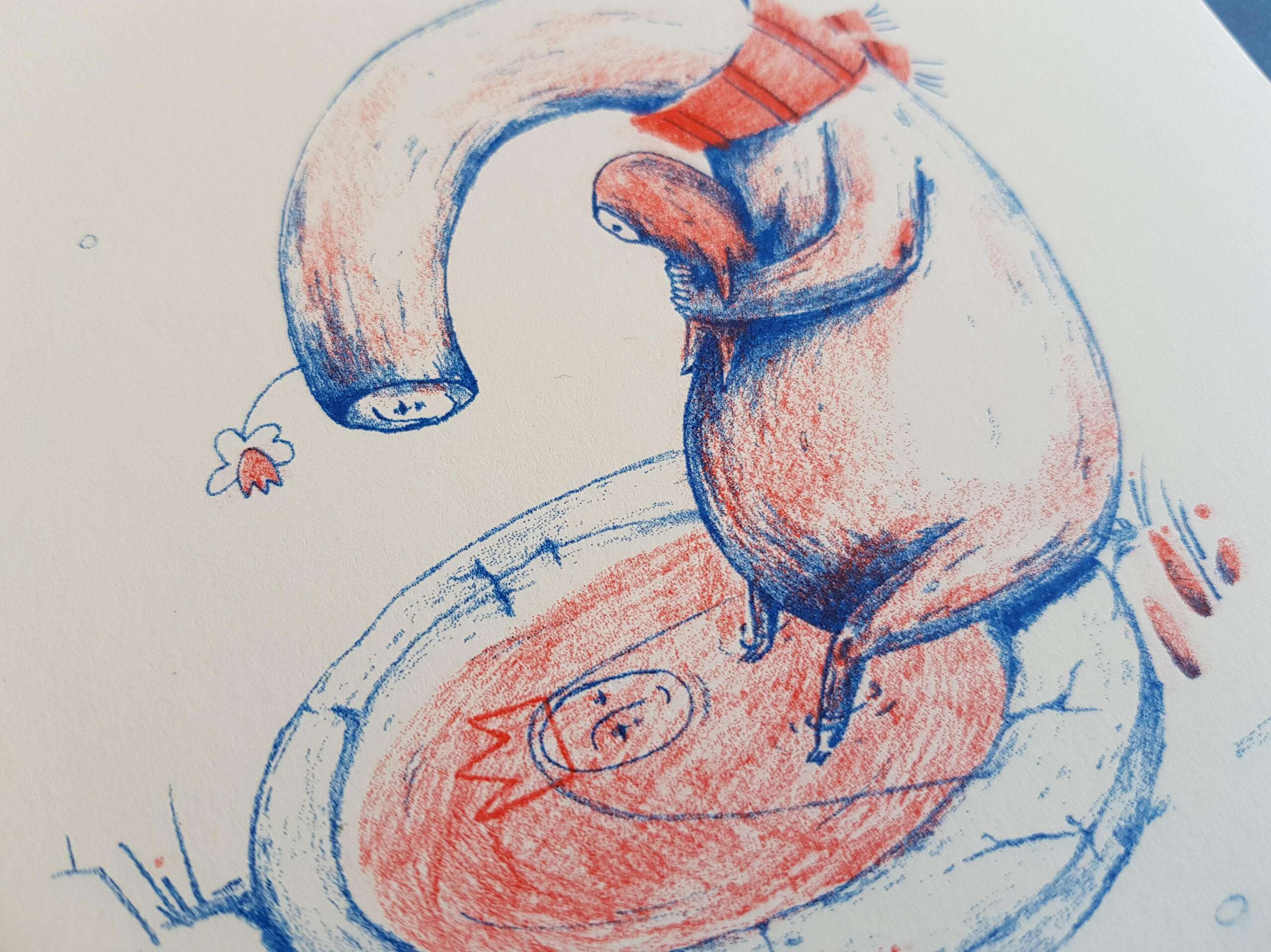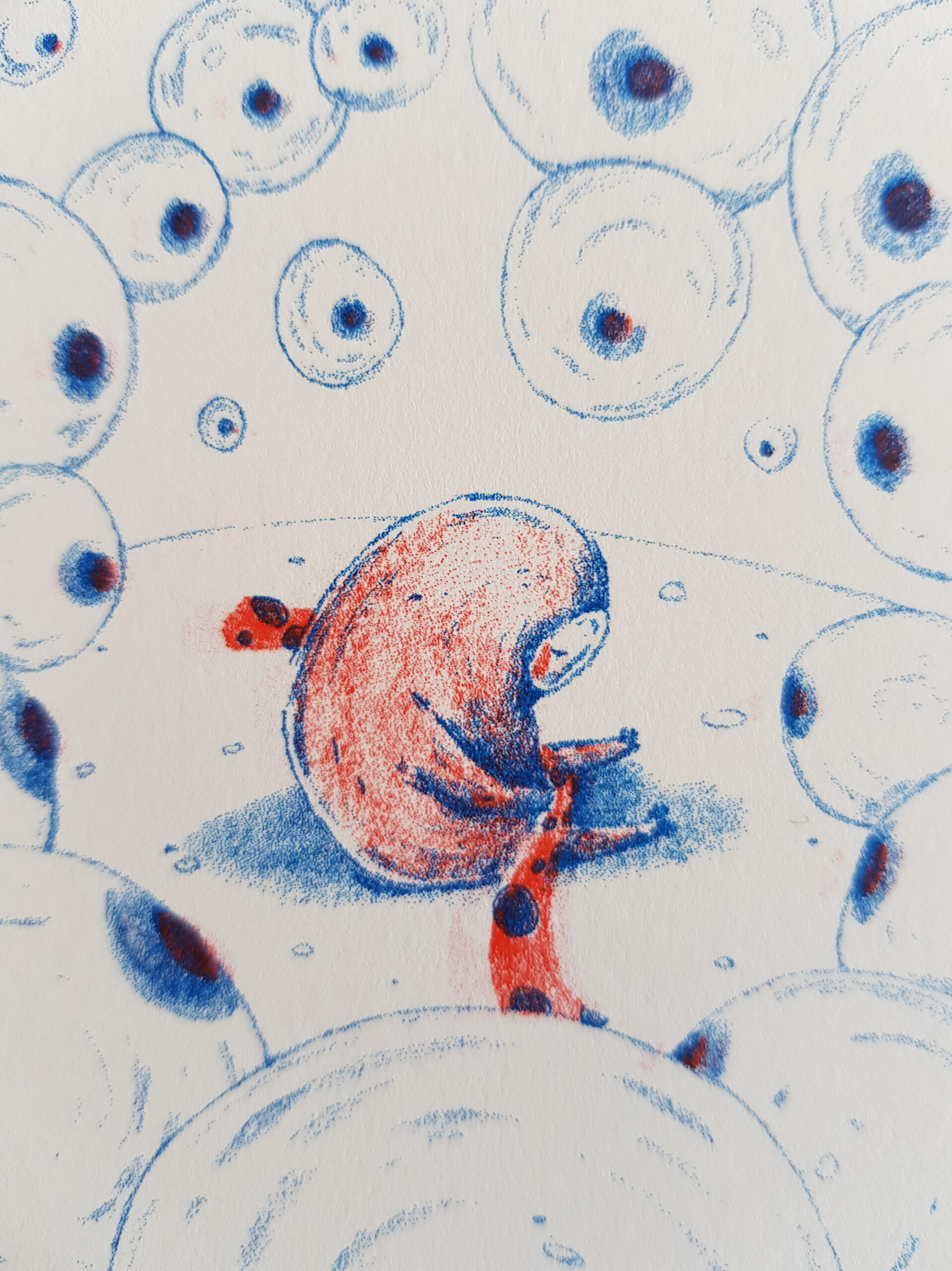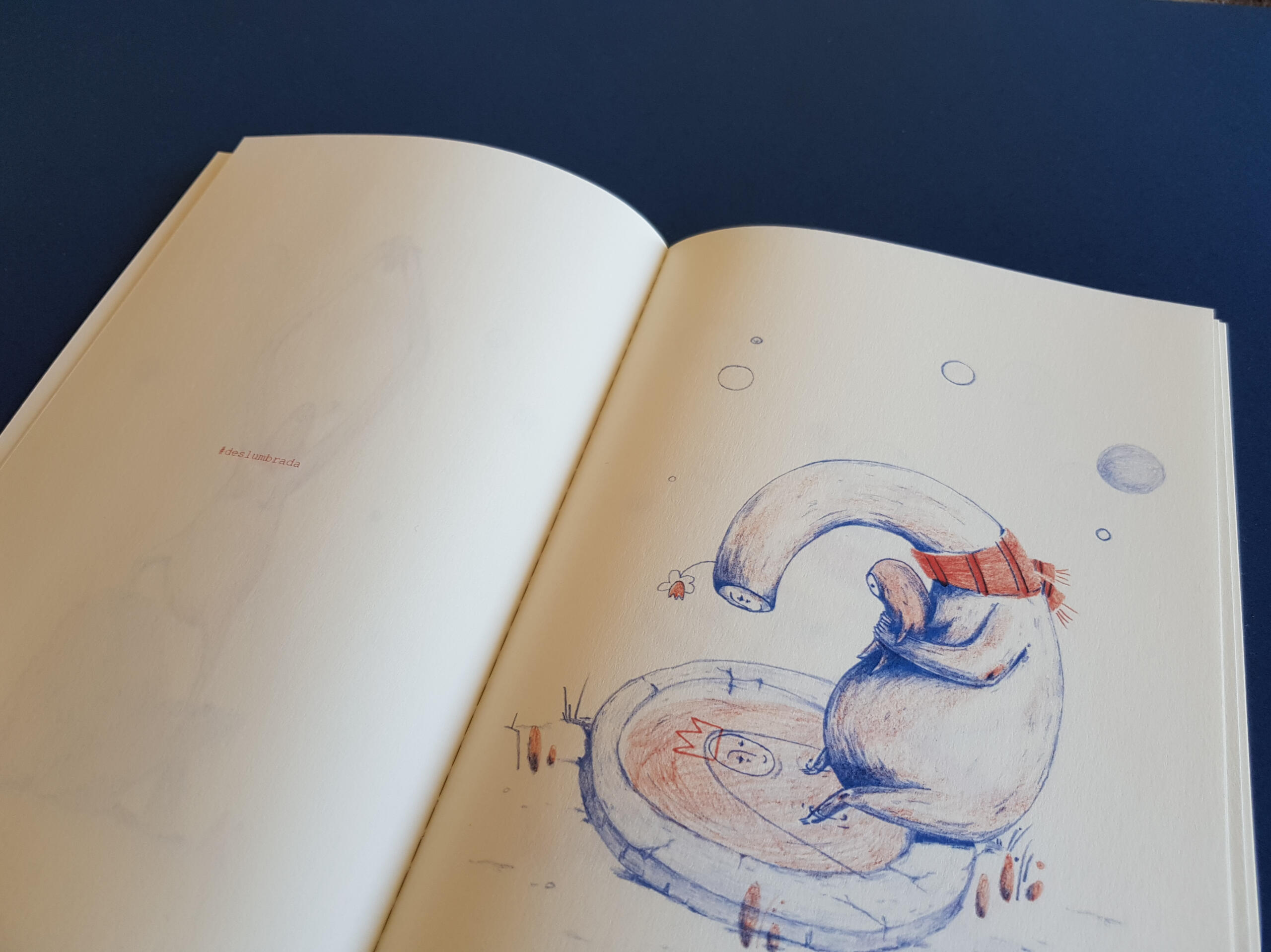 2019 | Illustrated fanzine, "Helplessness"Final result of the master's project, on the theme "narcissistic mother and the damage caused to her child".The final object is a fanzine, which presents the child's path from the mother's gestation, until the moment when s/he is freed from it. Accompanying each illustration is a random word that represents a characteristic of a narcissistic mother. Ironically, the word "amparo" (meaning "protection/support") refers to the name of the narcissistic mother who inspired the project and its title: "Desamparo" ("helplessness").The drawings were worked with graphite pencils, where different elements were drawn on different sheets. The separation served to later work the illustration to be printed in risography, in two colors.__● DISSERTATION